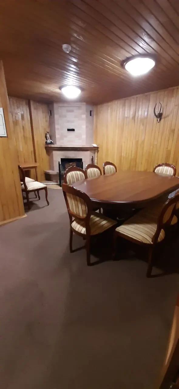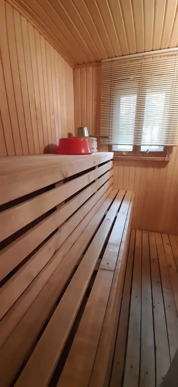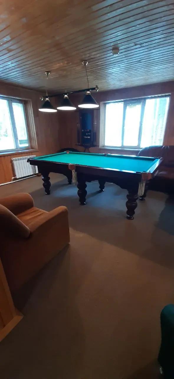 Площадь дома 105.90 м^2. Есть все для комфортного проживания и проведения вашего досуга: сауна, душ, санузел, кухонная зона оснащена бытовой техникой (микроволновка, чайник, холодильник), большая уютная гостиная с камином и обеденным столом, русский бильярд.