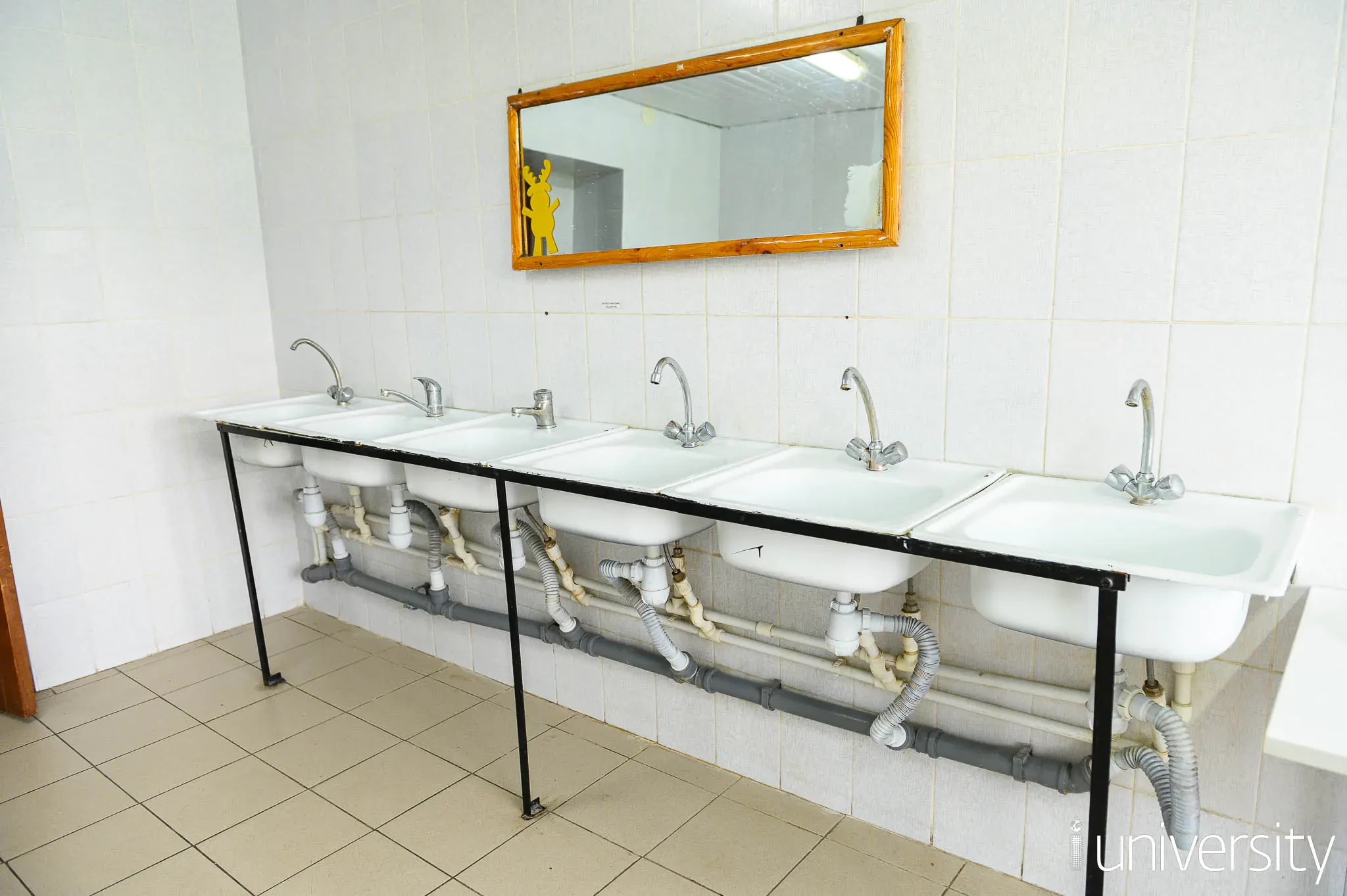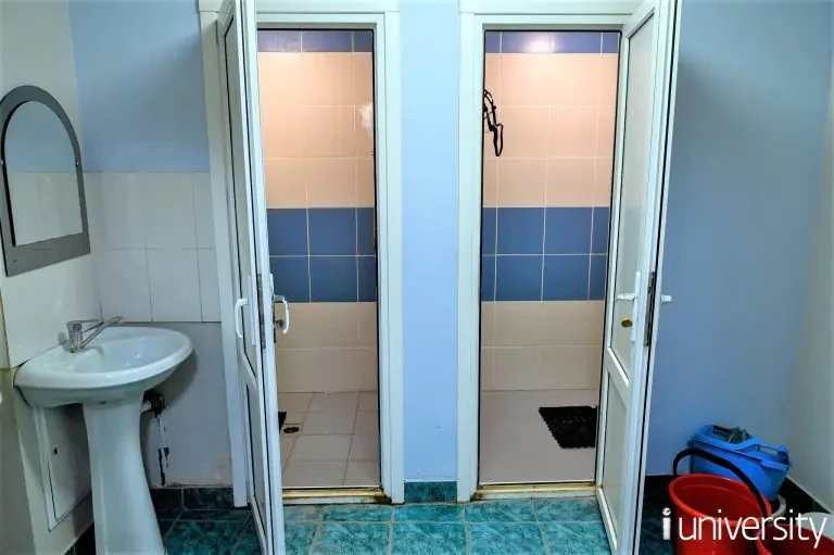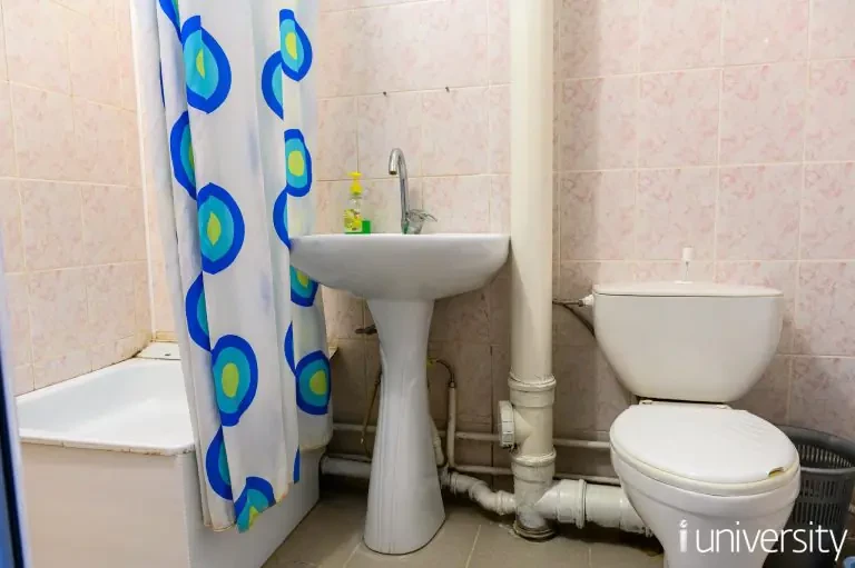 На этаже общежития расположены мужской и женский туалеты, 2 душевые комнаты, 2 умывальные комнаты и общая кухня, оснащенная 2 электрическими плитами и столами.