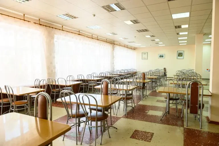 В жилых комнатах есть кровати, шкафы, письменные столы, тумбочки, книжные полки и стулья по количеству проживающих. Санитарные узлы, душевые, кухни оснащены оборудованием согласно требованиям СанПиН.