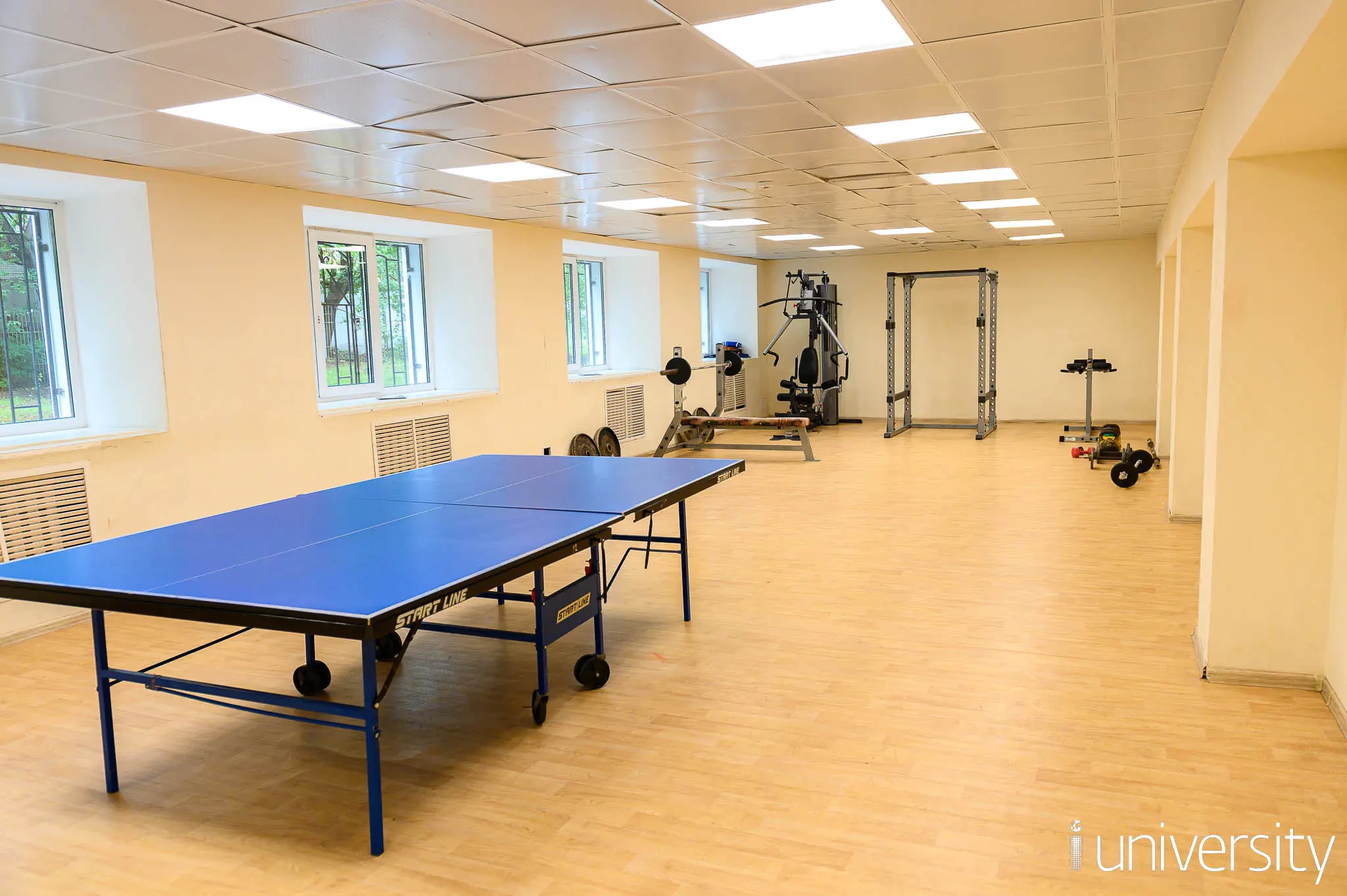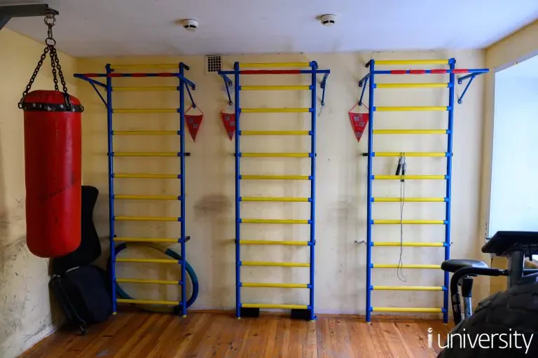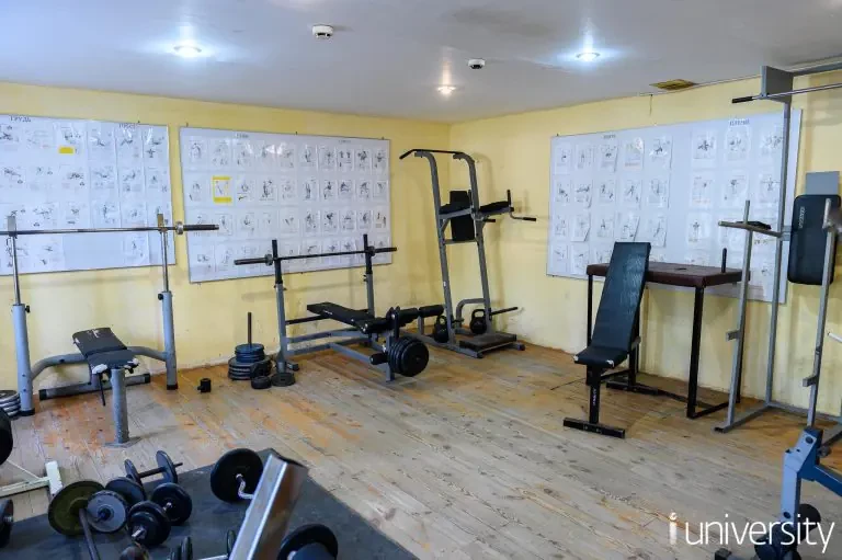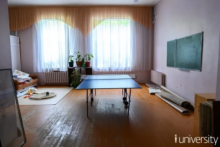 Душевые, сан.узлы и кухни на этажах. В общежитии на первом этаже расположены актовый и спортивный залы, а также досуговые комнаты.