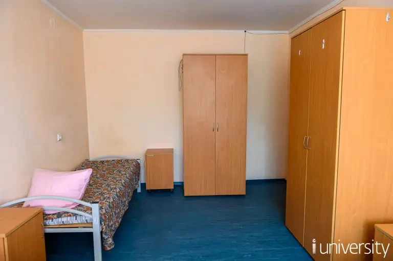 Каждая комната оборудована столом, шкафом, кроватями, прикроватными тумбочками и стульями. Проживающие в общежитии обучающиеся обеспечены матрацем, подушкой, одеялом, покрывалом, комплектом постельного белья.