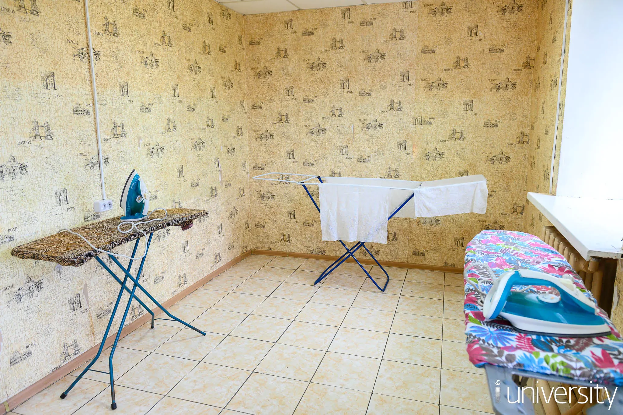 В общежитии имеется прачечная, оборудованная 2 стиральными машинами, гладильная.