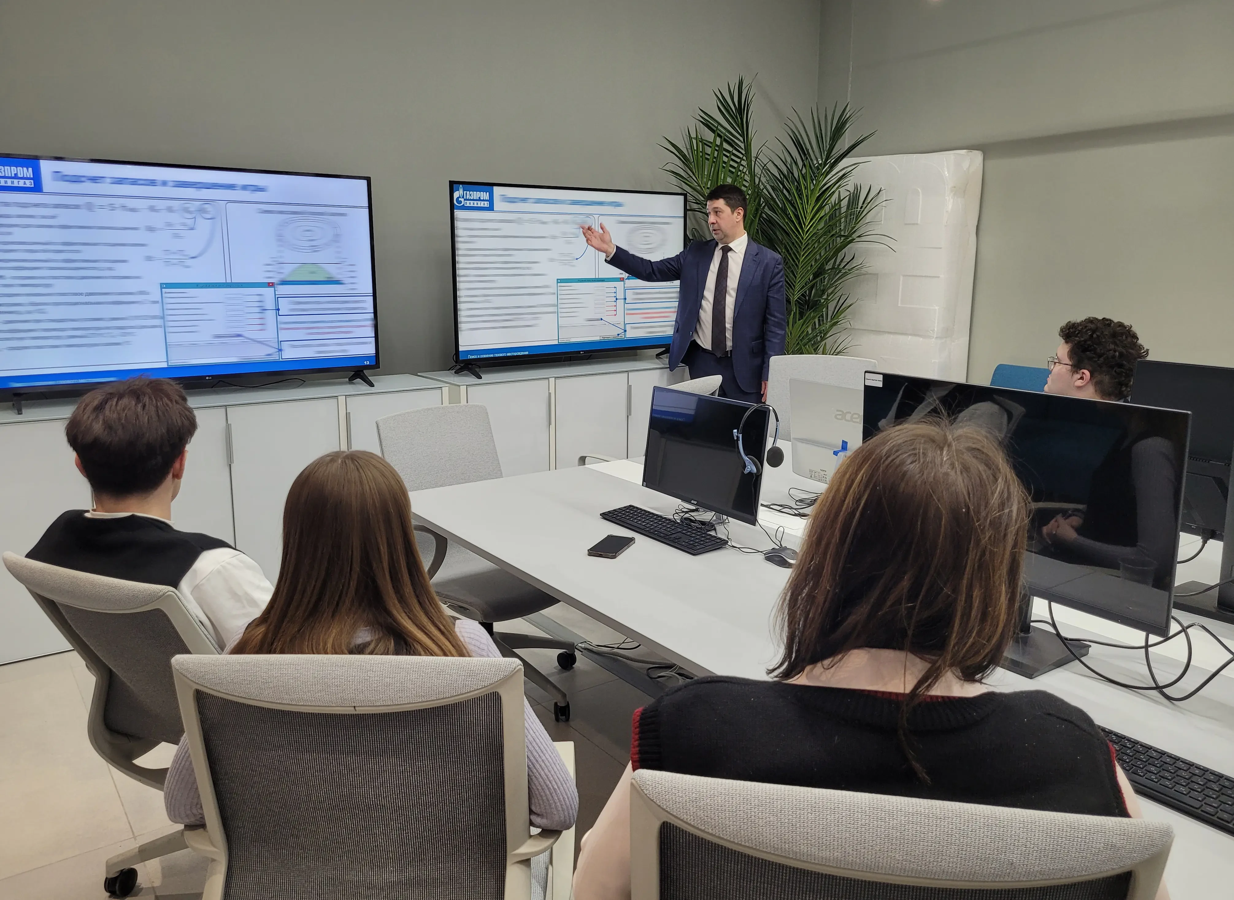 на специальном цифровом тренажере по освоению газового месторождения. Школьники