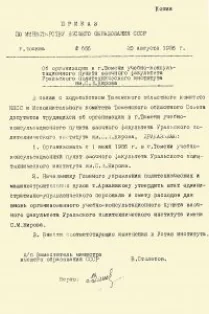 Интенсивное освоение огромной территории области, развитие машиностроительной отрасли настойчиво требовали подготовки специалистов высокой квалификации. Для решения этой задачи по ходатайству партийных и советских органов в 1956 г. в Тюмени открывается учебно-консультационный пункт Уральского политехнического института.